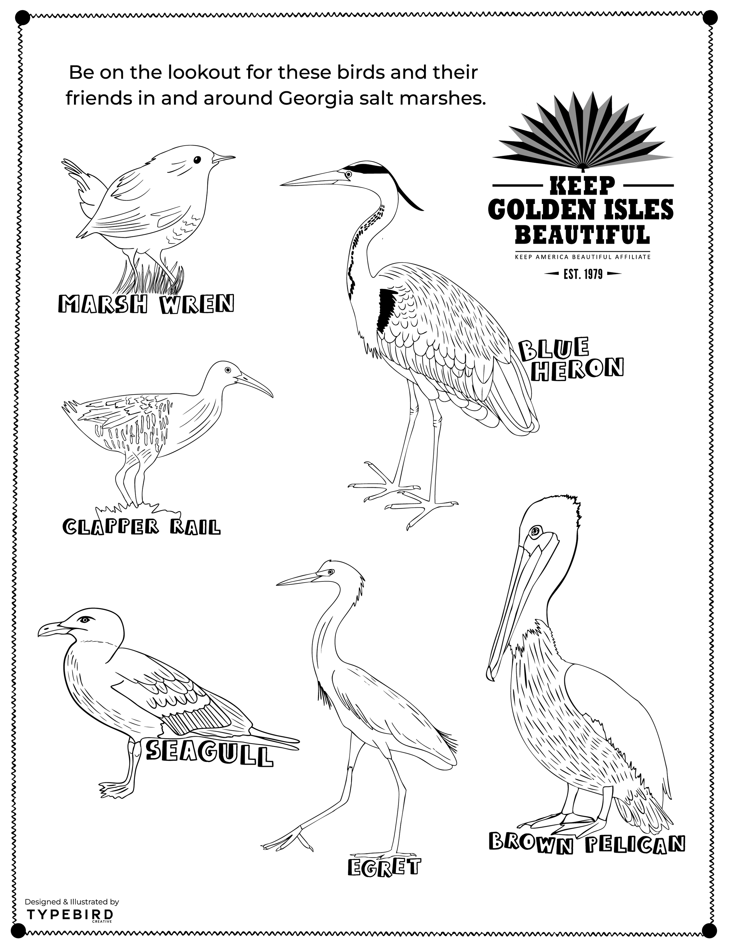 This month I got to do a fun project for my friends at Keep Golden Isles Beautiful highlighting their event with the Audubon Society. They wanted me to create an identification sheet to share with everyone. I decided to also create a coloring sheet in case there were any little ones about. Please feel free to download it and plan a trip to the beautiful Golden Isles today!